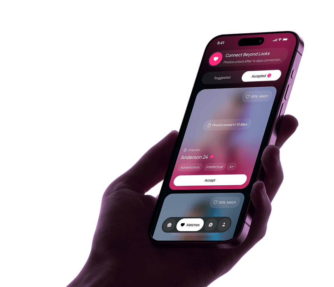 Photos remain hidden for 10 days, allowing you to connect on personality, values, and dreams before physical attraction influences your decision,